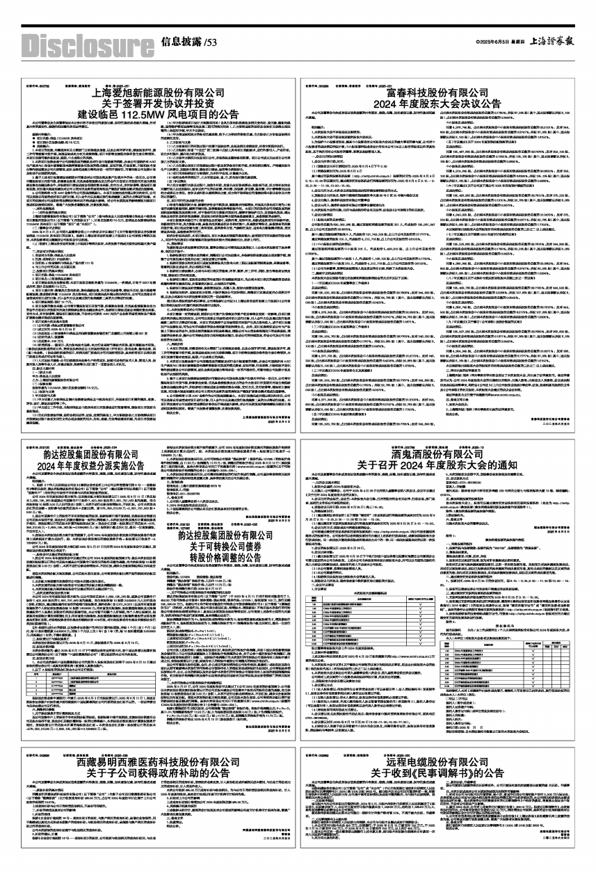 其中通过互联网投票系统投票(http://wltp.cninfo.com.cn)投票的时间为:2025年6月4日9:15-15:00的任意时间;通过深交所交易系统进行网络投票的时间为:2025年6月4日9:15一9:25,9:30一11:30,13:00-15:00。