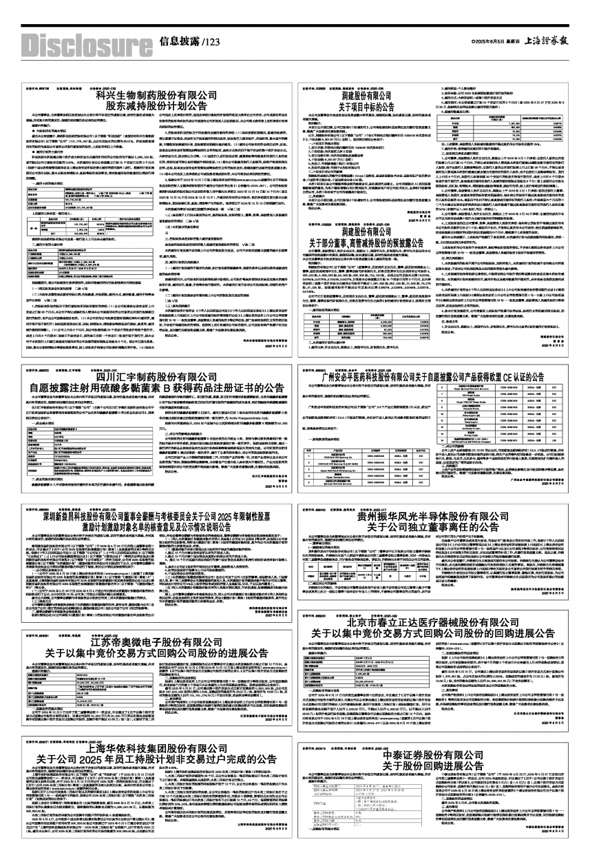 截至2025年5月31日,公司通过集中竞价交易方式已累计回购股份5,800,000股,占公司总股本247,500,000股的比例为2.34%,回购成交的最高价为26.22元/股,最低价为16.96元/股,支付的资金总额为人民币115,741,274.79 元(不含印花税、交易佣金等交易费用)。