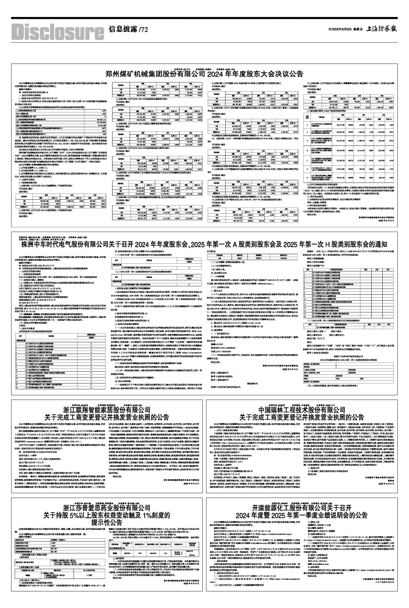 拟出席本次股东会的A股股东(亲身或其委任代表)应最晚于2025年6月23日(星期一)或该日以前,将出席股东会的回执(附件2)发送至公司邮箱(ir@csrzic.com)。