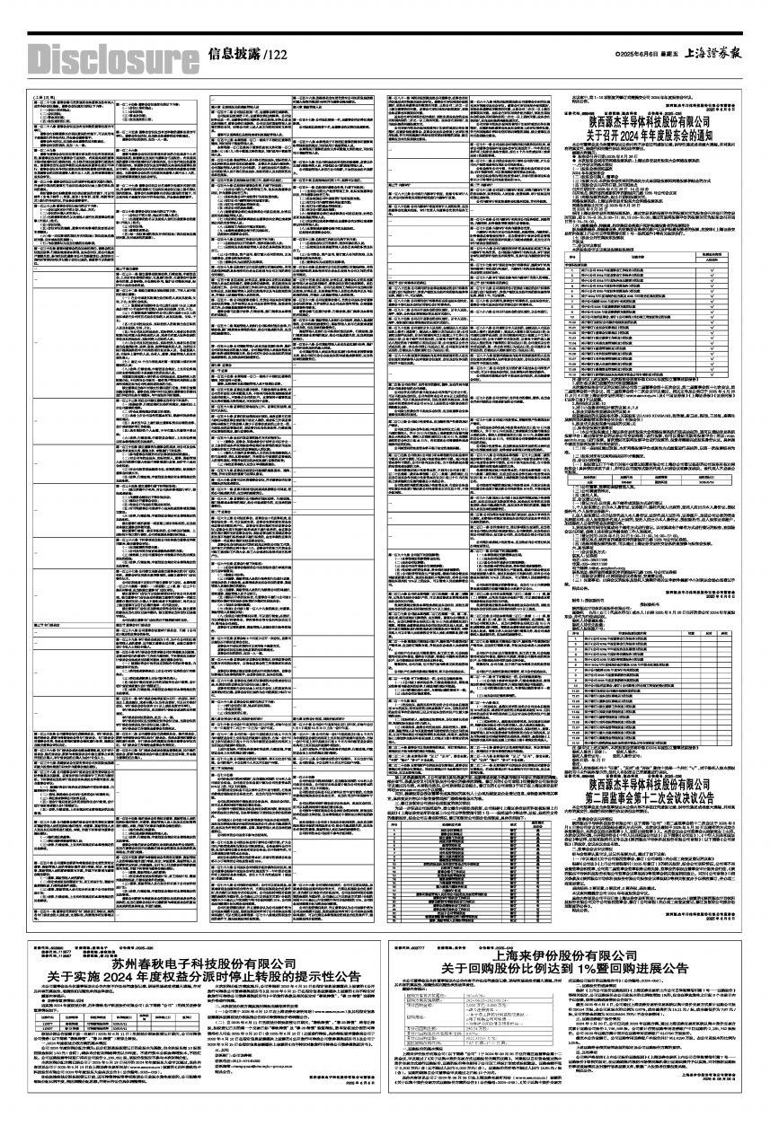 (二)自2025年6月11日至权益分派股权登记日期间,“春秋转债”、“春23转债”将停止转股,股权登记日后的第一个交易日起“春秋转债”及“春23转债”恢复转股,欲享受权益分派的可转债持有人可在2025年6月10日(含2025年6月10日)之前进行转股,具体转股要求请参阅公司于2020年4月10日在指定信息披露媒体上披露的《公开发行可转换公司债券募集说明书》及公司于2023年3月15日在指定信息披露媒体上披露的《向不特定对象发行可转换公司债券募集说明书》。