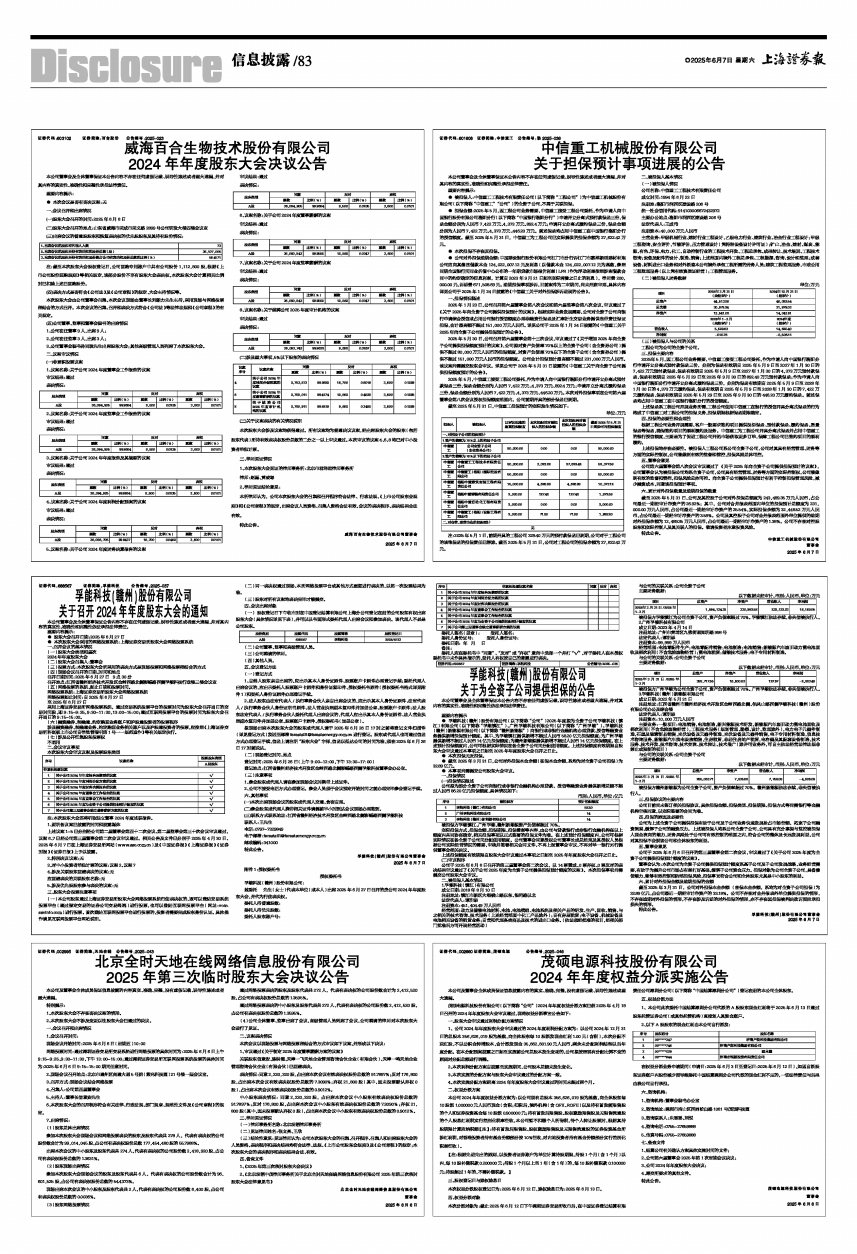 上述议案1-5已分别经公司第二届董事会第四十二次会议、第二届监事会第三十次会议审议通过,议案6、7已经公司第三届董事会第二次会议审议通过。相关公告及文件已分别于2025年4月30日、2025年6月7日在上海证券交易所网站(www.sse.com.cn)及《中国证券报》《上海证券报》《证券时报》《证券日报》上予以披露。