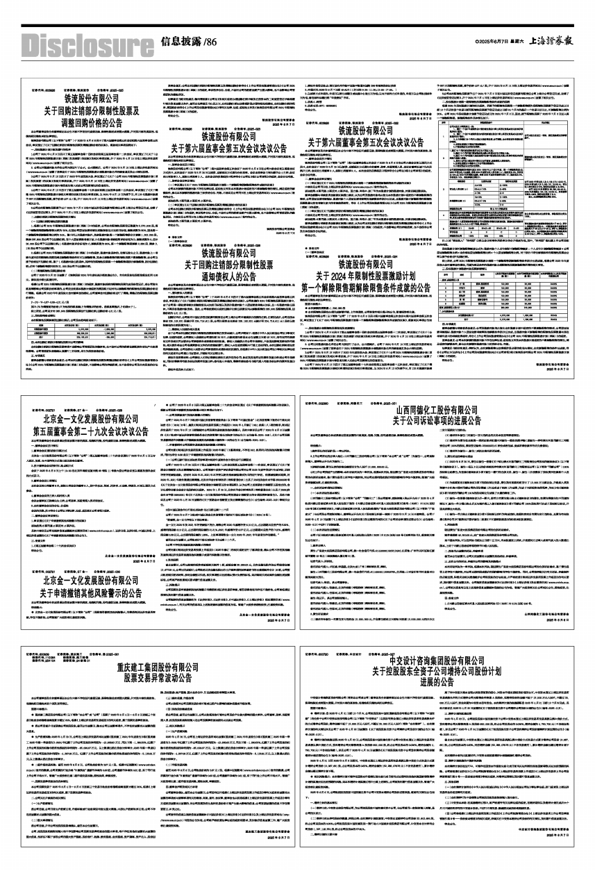 2025年6月6日,公司收到控股股东中国交建全资子公司中交资本增持公司股份进展来函,现将有关情况公告如下: