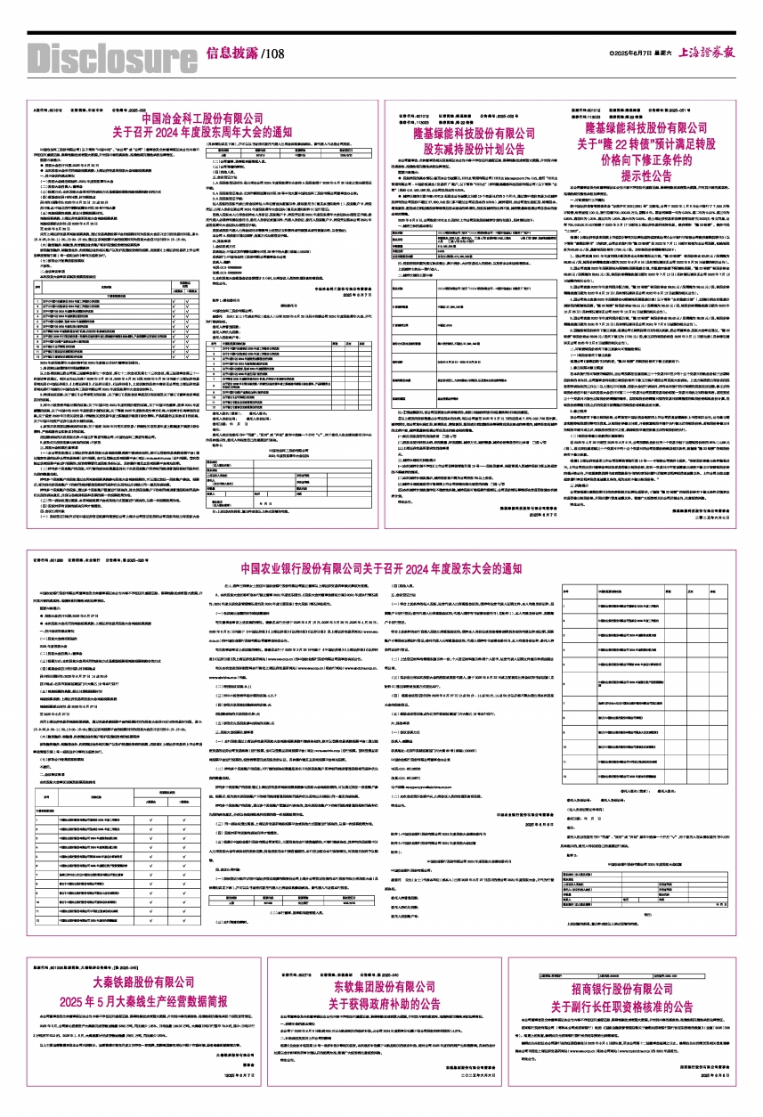 6、因触发转股价格向下修正条款,根据公司《募集说明书》的相关条款,经公司董事会、股东大会审议通过,“隆22转债”转股价格由58.28元/股向下修正为17.50元/股,修正后的转股价格自2025年3月11日起生效(具体情况请详见公司2025年3月8日披露的相关公告)。