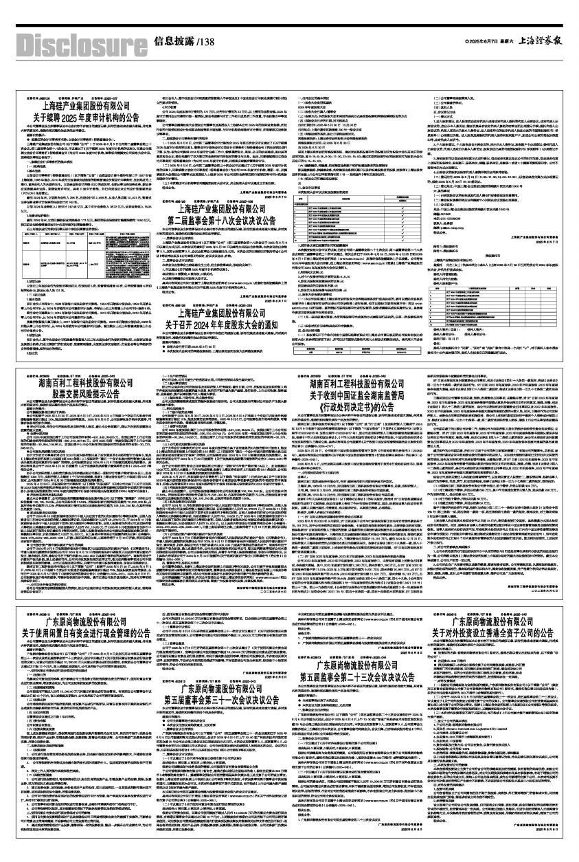 广东原尚物流股份有限公司(以下简称“公司”)第五届董事会第三十一次会议通知已于2025年6月5日以书面通知等方式发出并送达,会议于2025年6月6日上午10:00在广州经济技术开发区东区东众路25号公司办公楼三楼会议室以现场表决方式召开。本次会议应到董事5人,实到董事5人,公司董事长余军先生召集和主持本次会议,公司全体监事及部分高级管理人员列席本次会议。会议的召集、召开和表决程序符合《中华人民共和国公司法》和《公司章程》等有关规定。