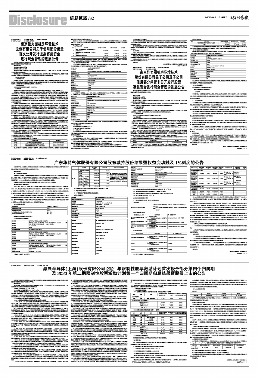 3、2025年6月6日,公司已经完成2023年限制性股票激励计划部分第一类限制性股票回购注销手续,回购注销第一类限制性股票8.10万股。本次回购注销限制性股票完成后,公司总股本减少至120,304,261股,股东持股比例被动增加。具体内容详见公司于2025年6月4日在上海证券交易所网站(www.sse.com.cn)披露的《广东华特气体股份有限公司2023 年限制性股票激励计划部分第一类限制性股票回购注销实施公告》(公告编号:2025-036)。
