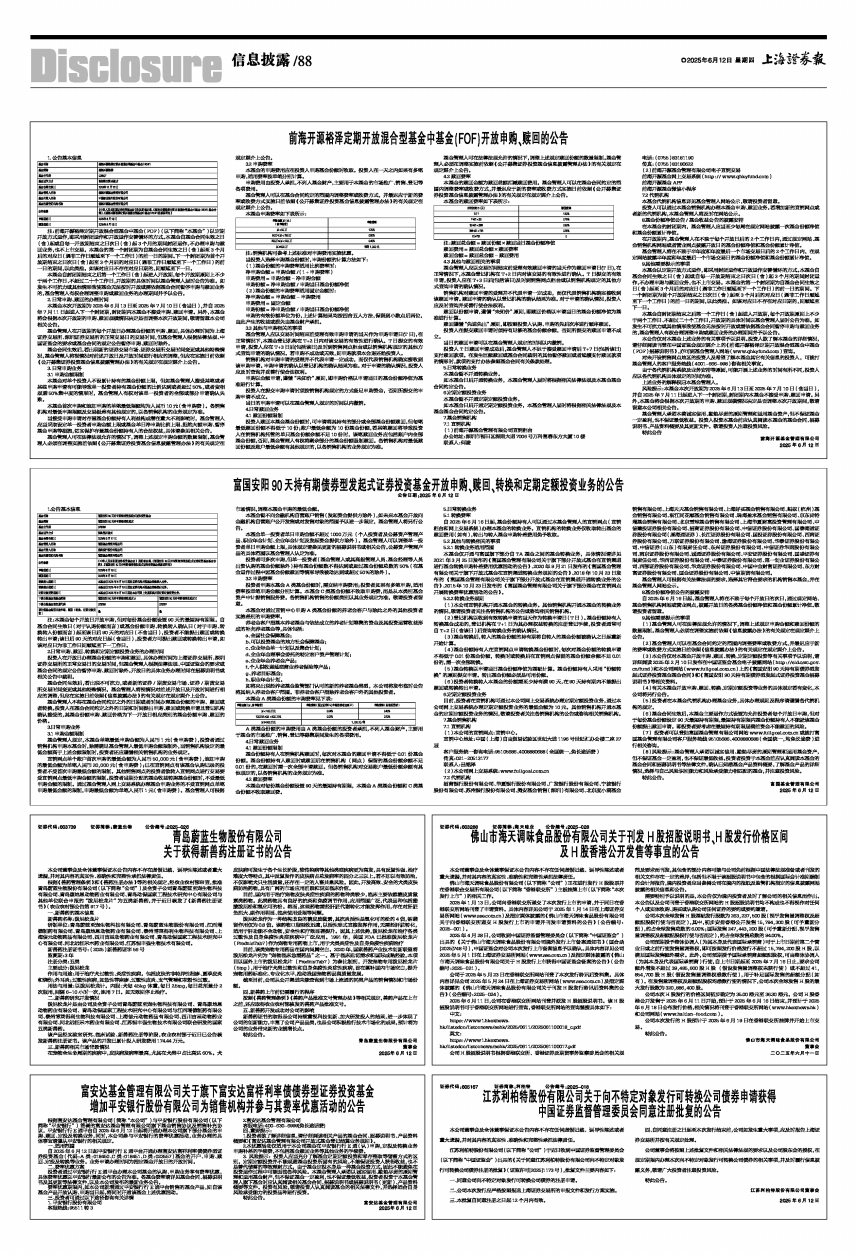 风险提示:本基金本次开放期为2025年6月13日至2025年7月10日(含当日),并自2025年7月11日起进入下一个封闭期,封闭期内本基金不接受申购、赎回申请。另外,本基金将会根据本次开放期的申购、赎回规模情况决定是否调整本次开放期间,敬请留意本公司相关公告。