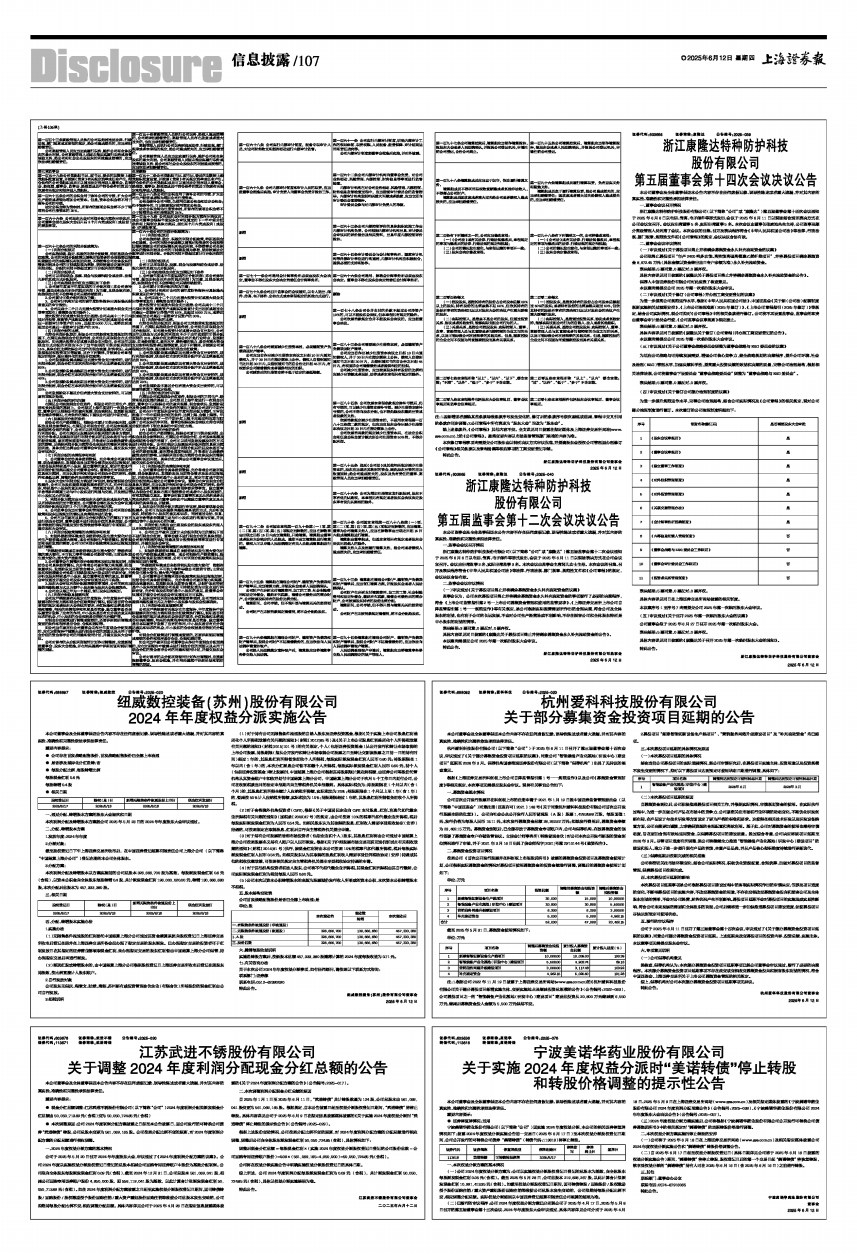 宁波美诺华药业股份有限公司(以下简称“公司”)因实施2024年度权益分派,本公司的相关证券停复牌情况如下:披露2024年度权益分派实施公告前一交易日(2025年6月17日)至本次权益分派股权登记日期间,公司公开发行的可转换公司债券 “美诺转债”(转债代码:113618)将停止转股。