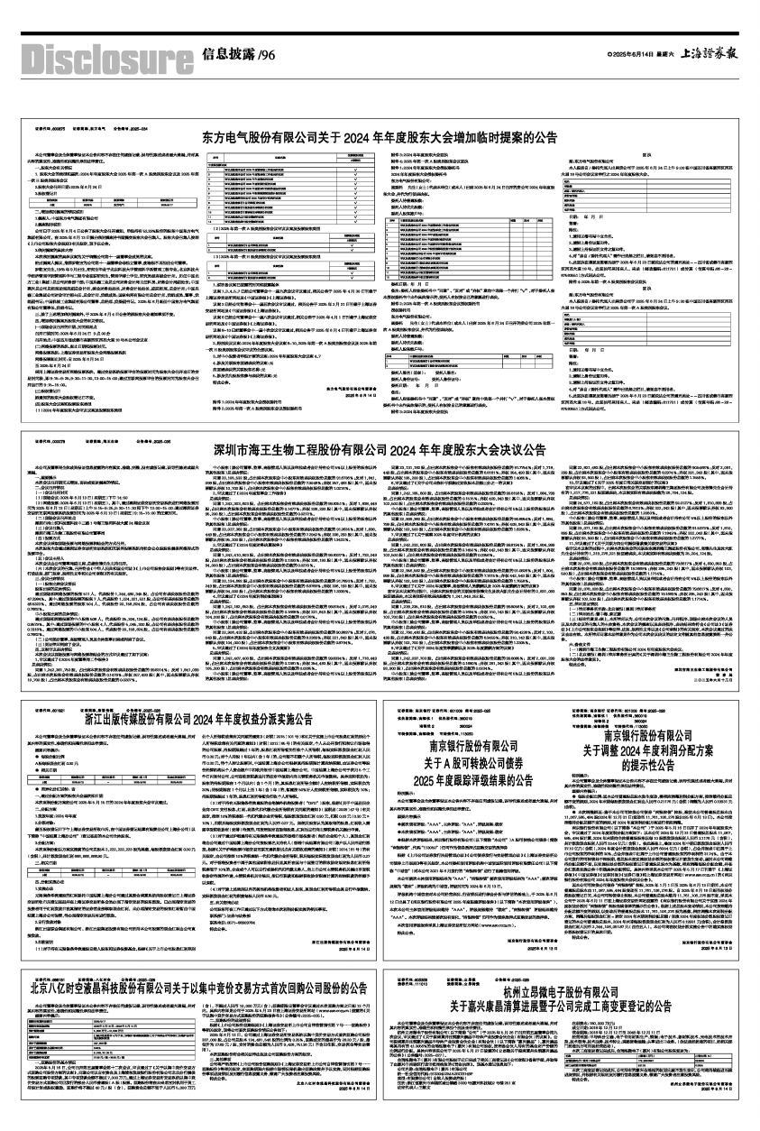 公司已于2025年6月4日公告了股东大会召开通知,单独持有52.29%股份的股东中国东方电气集团有限公司,在2025年6月13日提出临时提案并书面提交股东大会召集人。股东大会召集人按照《上市公司股东大会规则》有关规定,现予以公告。
