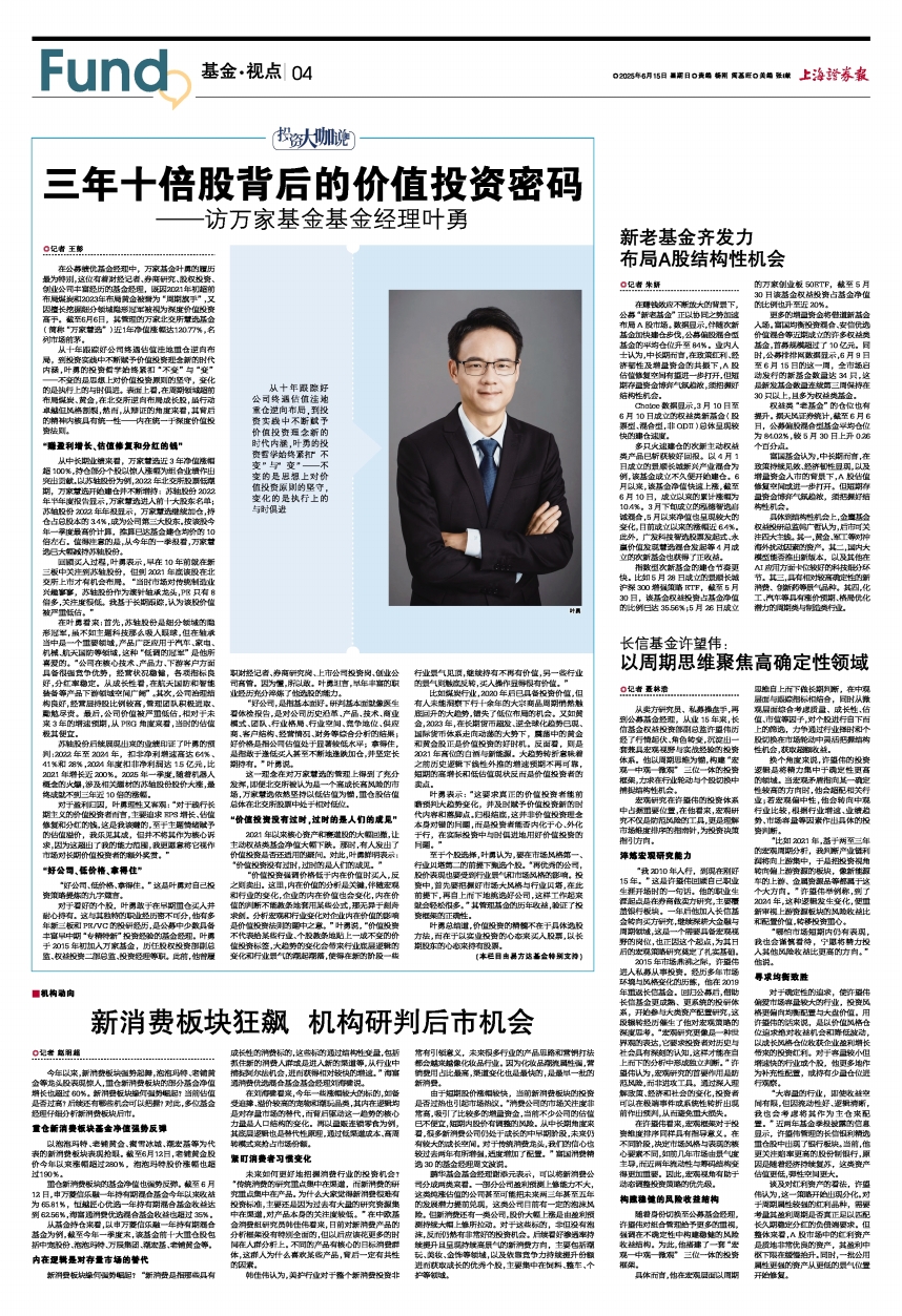 三年十倍股背后的价值投资密码——访万家基金基金经理叶勇