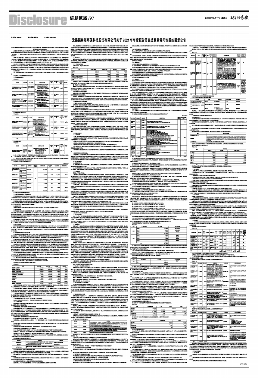 无锡德林海环保科技股份有限公司(以下简称“公司”或“德林海”)近日收到上海证券交易所下发的《关于无锡德林海环保科技股份有限公司2024 年年度报告的信息披露监管问询函》(上证科创公函【2025】0174号)(以下简称“《问询函》”)。根据《问询函》的要求,公司会同相关人员就《问询函》中所提问题逐项进行了认真分析,现将相关问题回复如下: