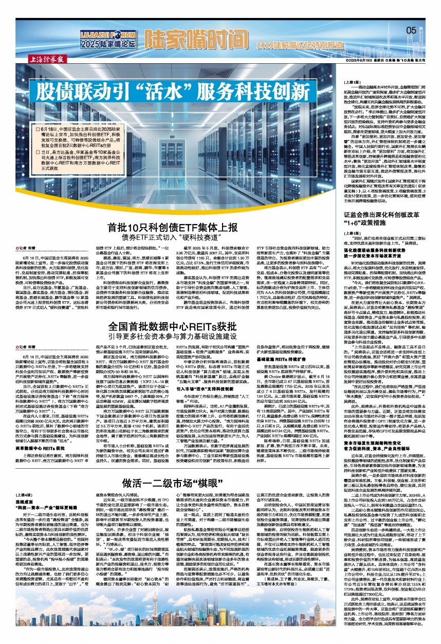 □ 6月18日,中国证监会主席吴清在2025陆家嘴论坛上宣布,加快推出科创债ETF,积极发展可交换债、可转债等股债结合产品;将批复全国首批2只数据中心REITs注册