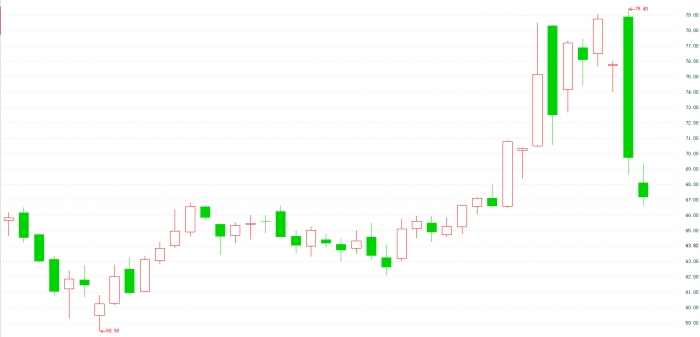 随后冲突出现缓和迹象,国际原油价格大幅跳水。北京时间周二凌晨,ICE布油一度下跌近8%,WTI原油最多下跌约9%,抹去近两周以来的涨幅。此外,美国WTI原油在6月24日亚洲交易时段一度跌超5%,最低触及64.38美元/桶。