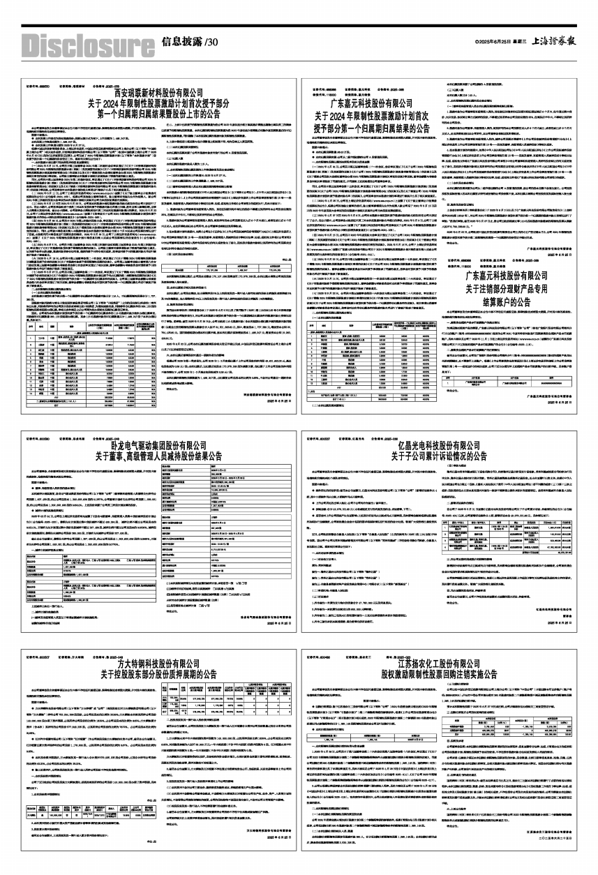 (六)2025年3月14日,公司召开第五届董事会第四十一次会议与第五届监事会第二十六次会议,审议通过了《关于向激励对象授予预留限制性股票的议案》。董事会薪酬与考核委员会对本次授予事项发表了同意的意见,监事会对本次授予日授予的激励对象名单进行核实并发表了核查意见。