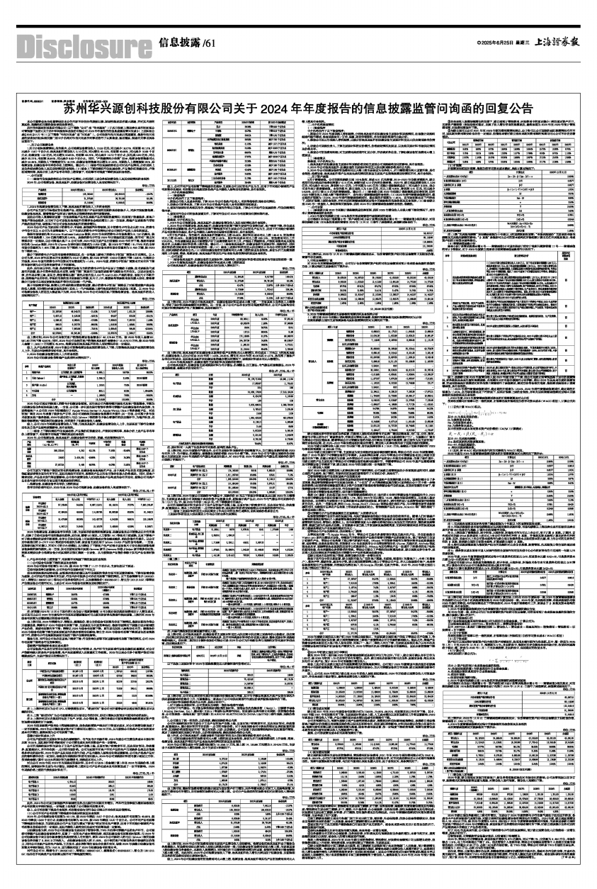 苏州华兴源创科技股份有限公司(以下简称“公司”或“华兴源创”)于近日收到上海证券交易所科创板公司管理部下发的《关于苏州华兴源创科技股份有限公司2024年年度报告的信息披露监管问询函》(上证科创公函【2025】0177号)(以下简称“年报问询函”或“问询函”)。公司收到年报问询函后高度重视,根据年报问询函的要求及时组织相关部门和中介机构对年报问询函所列事项进行了认真核查、逐项落实,现就有关事项具体回复如下: