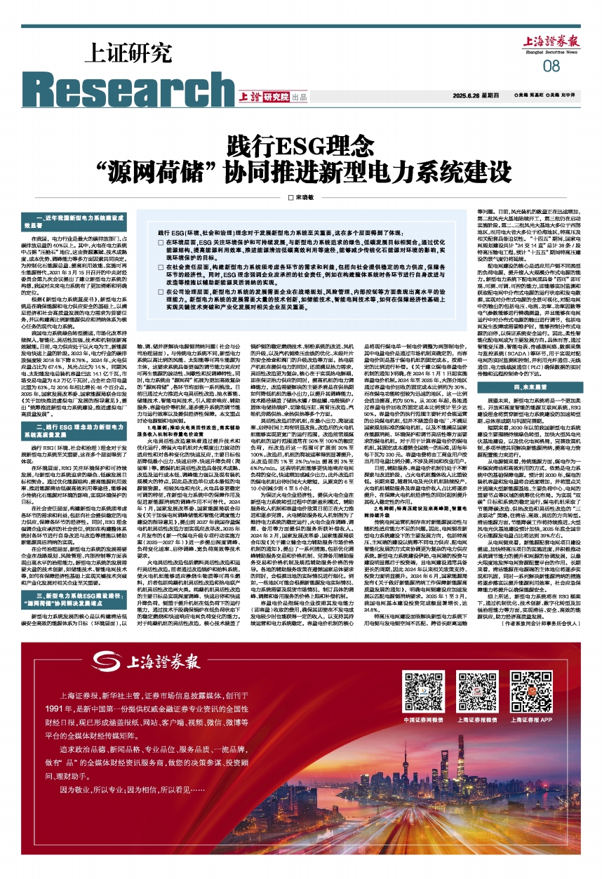 践行ESG理念 “源网荷储”协同推进新型电力系统建设