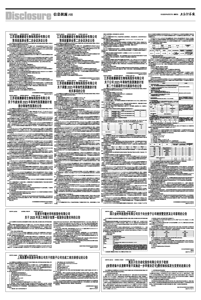 截至2025年6月26日,公司2023年员工持股计划第一批解锁股票2,014,400股已通过集中竞价交易方式出售完毕,第一批解锁股票尚有70股零股受交易规则限制未能卖出,将计入公司2023年员工持股计划第二批股票解锁后一并处置。后续2023年员工持股计划管理委员会将根据本员工持股计划的相关约定进行相关税费缴纳、收益分配等工作。