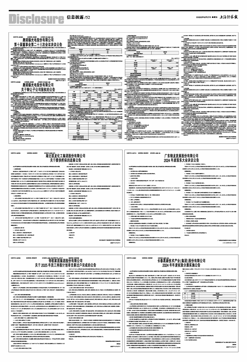 3.公司与汉口银行股份有限公司荆门分行(以下简称“汉口银行荆门分行”)签订了《保证合同》(编号:DB2025060900000030),约定公司为控股子公司湖北凯龙八达物流有限公司与汉口银行荆门分行签订的合同编号HT2025060900000016 的《流动资金借款合同》所形成的债务提供连带责任保证。本次提供的担保在公司已审批的担保额度范围内。