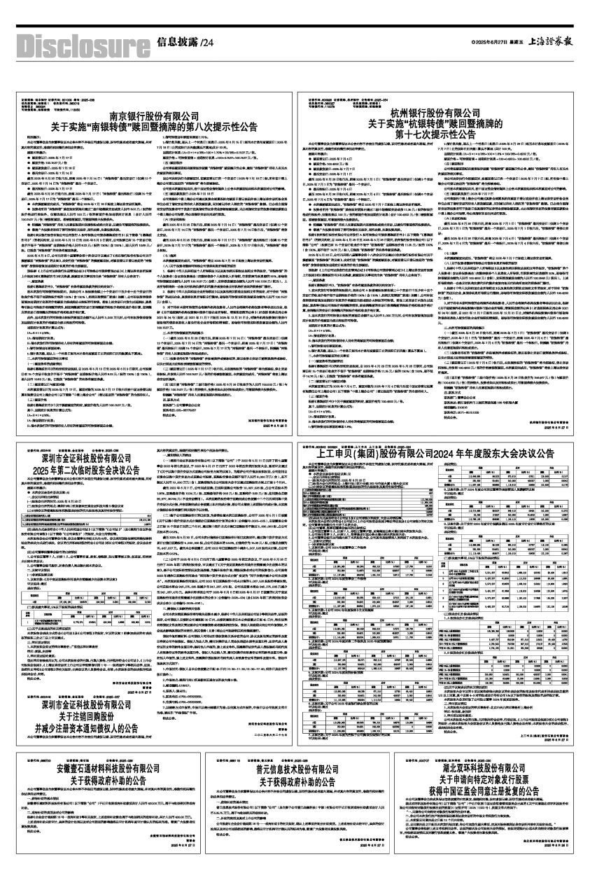 (一)截至2025年6月26日收市后,距离2025年7月14日(“南银转债”最后交易日)仅剩12个交易日,2025年7月14日为“南银转债”最后一个交易日;距离2025年7月17日(“南银转债”最后转股日)仅剩15个交易日,2025年7月17日为“南银转债”最后一个转股日。特提醒“南银转债”持有人注意在限期内转股或卖出。