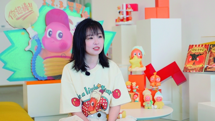 “毛绒产品我们选择了简化设计,是为了突出星星人一些更原始感的东西。”她透露,包括配色也都退回了最原始的“星星人黄”。质感上选择了粒子填充,这是她很喜欢的材质。“捏起来像个小沙袋,很好捏。”