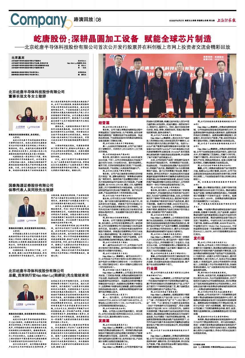 非常感谢大家参与北京屹唐半导体科技股份有限公司首次公开发行股票并在科创板上市的网上路演活动。在此,我谨代表保荐机构(主承销商)国泰海通证券股份有限公司,向所有参加本次活动的投资者朋友表示热烈的欢迎!