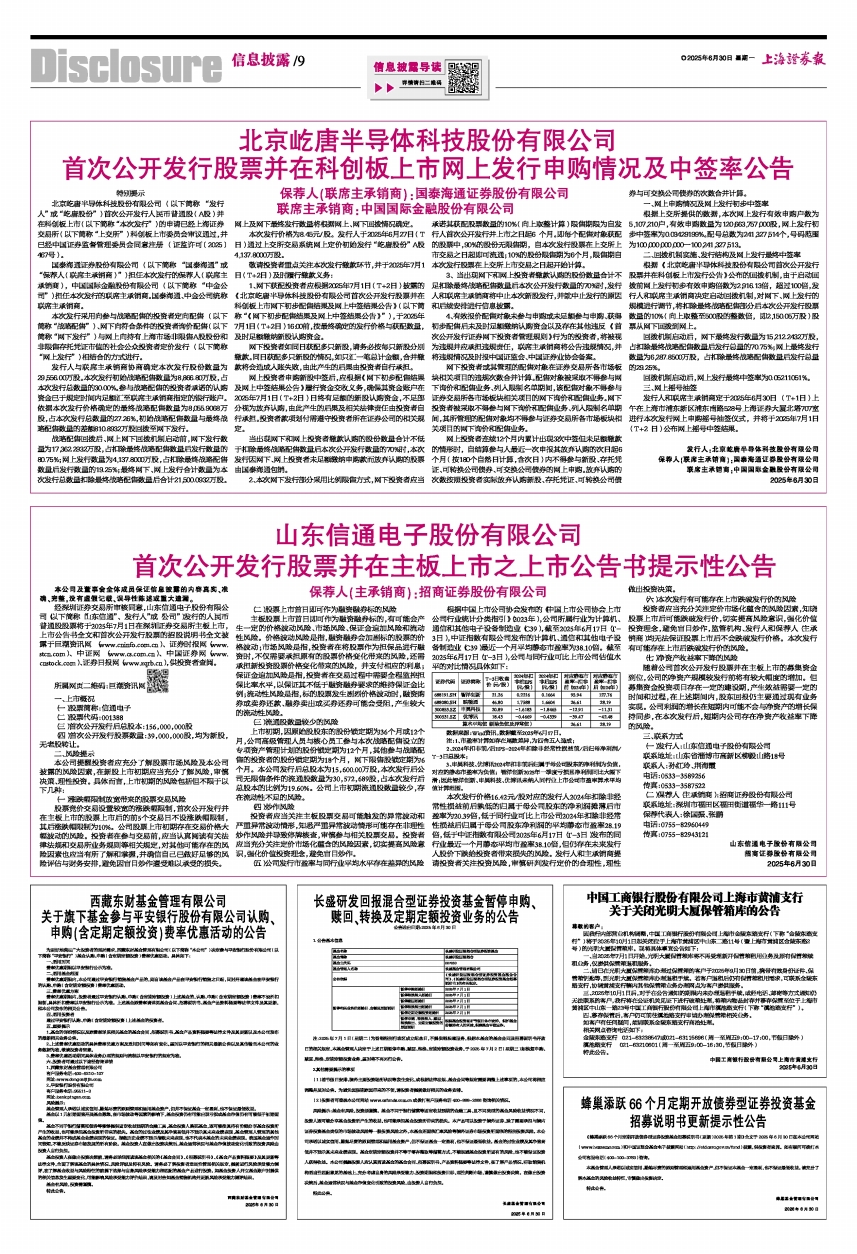 经深圳证券交易所审核同意,山东信通电子股份有限公司(以下简称“山东信通”、“发行人”或“公司”)发行的人民币普通股股票将于2025年7月1日在深圳证券交易所主板上市,上市公告书全文和首次公开发行股票的招股说明书全文披露于巨潮资讯网(www.cninfo.com.cn)、证券时报网(www.stcn.com)、中证网(www.cs.com.cn)、中国证券网(www.cnstock.com)、证券日报网(www.zqrb.cn),供投资者查阅。