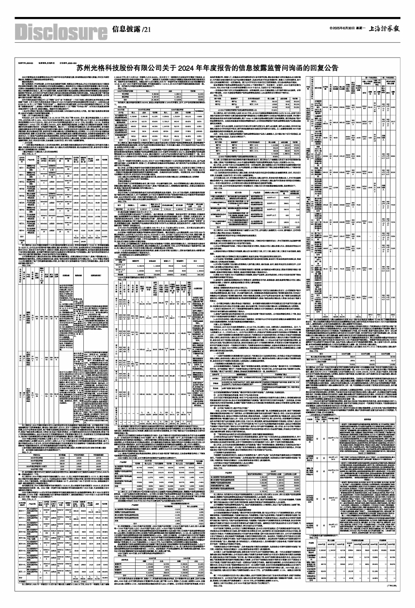 苏州光格科技股份有限公司(以下简称“公司”或“光格科技”)于近日收到上海证券交易所科创板公司管理部下发的《关于苏州光格科技股份有限公司2024年年度报告的信息披露监管问询函》(上证科创公函【2025】0176号)(以下简称“年报问询函”)。根据年报问询函的要求,公司与中信证券股份有限公司(以下简称“持续督导机构”)、容诚会计师事务所(特殊普通合伙)(以下简称“年审会计师”)对年报问询函提及的事项逐项进行了认真讨论、核查与落实。现就有关问题回复如下: