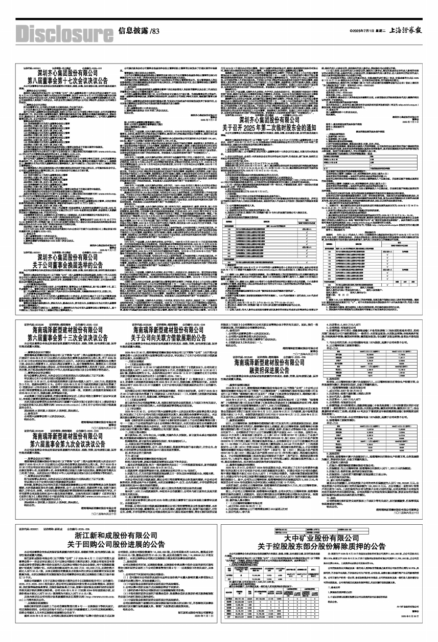 深圳齐心集团股份有限公司(以下简称“公司”)于2025年6月27日召开第八届董事会第十七次会议,决定于2025年7月18日14:30以现场表决与网络投票相结合的方式召开公司2025年第二次临时股东会,现就召开本次股东会的相关事项通知如下: