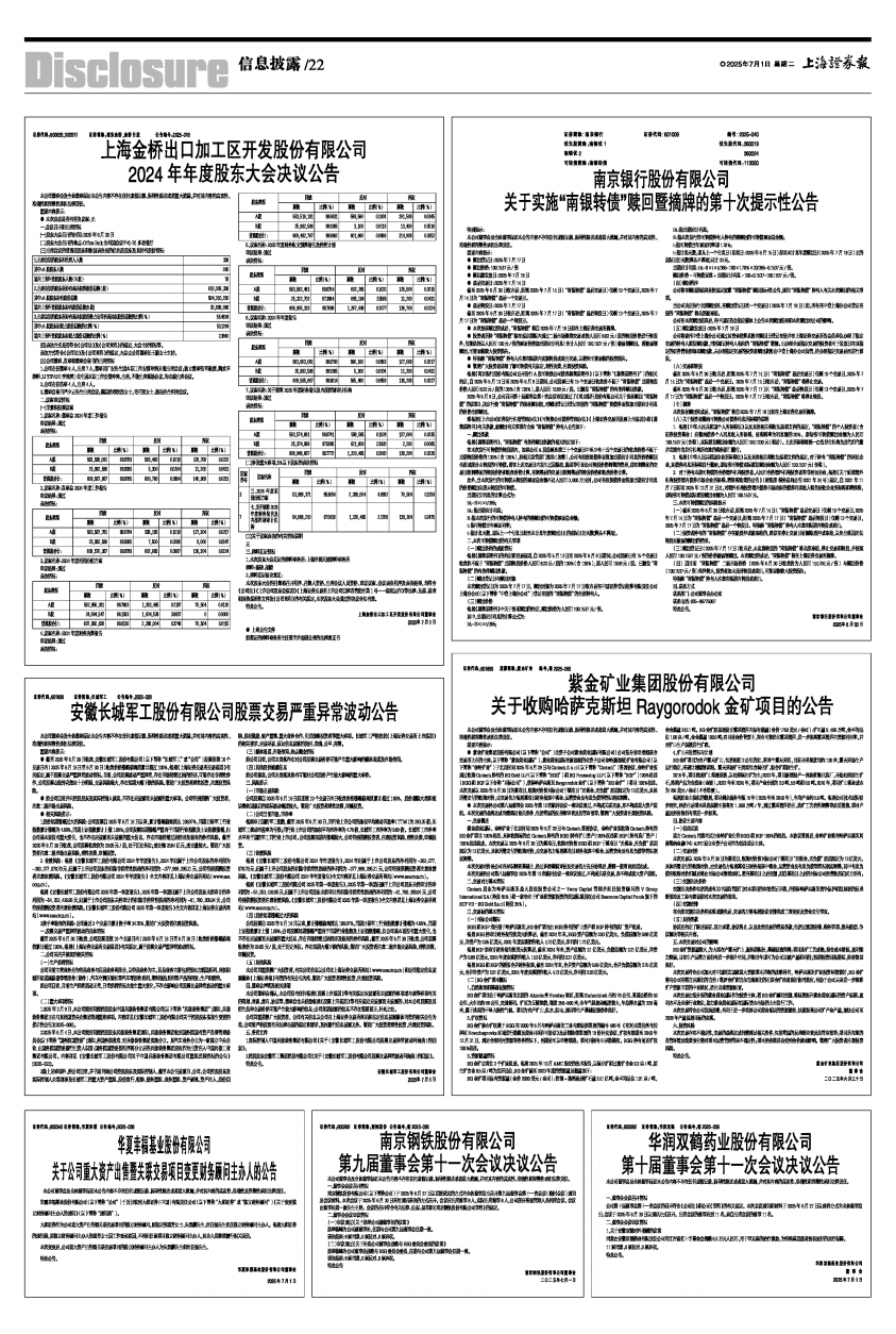 证券代码:600639、900911 证券简称:浦东金桥、金桥B股 公告编号:2025-016