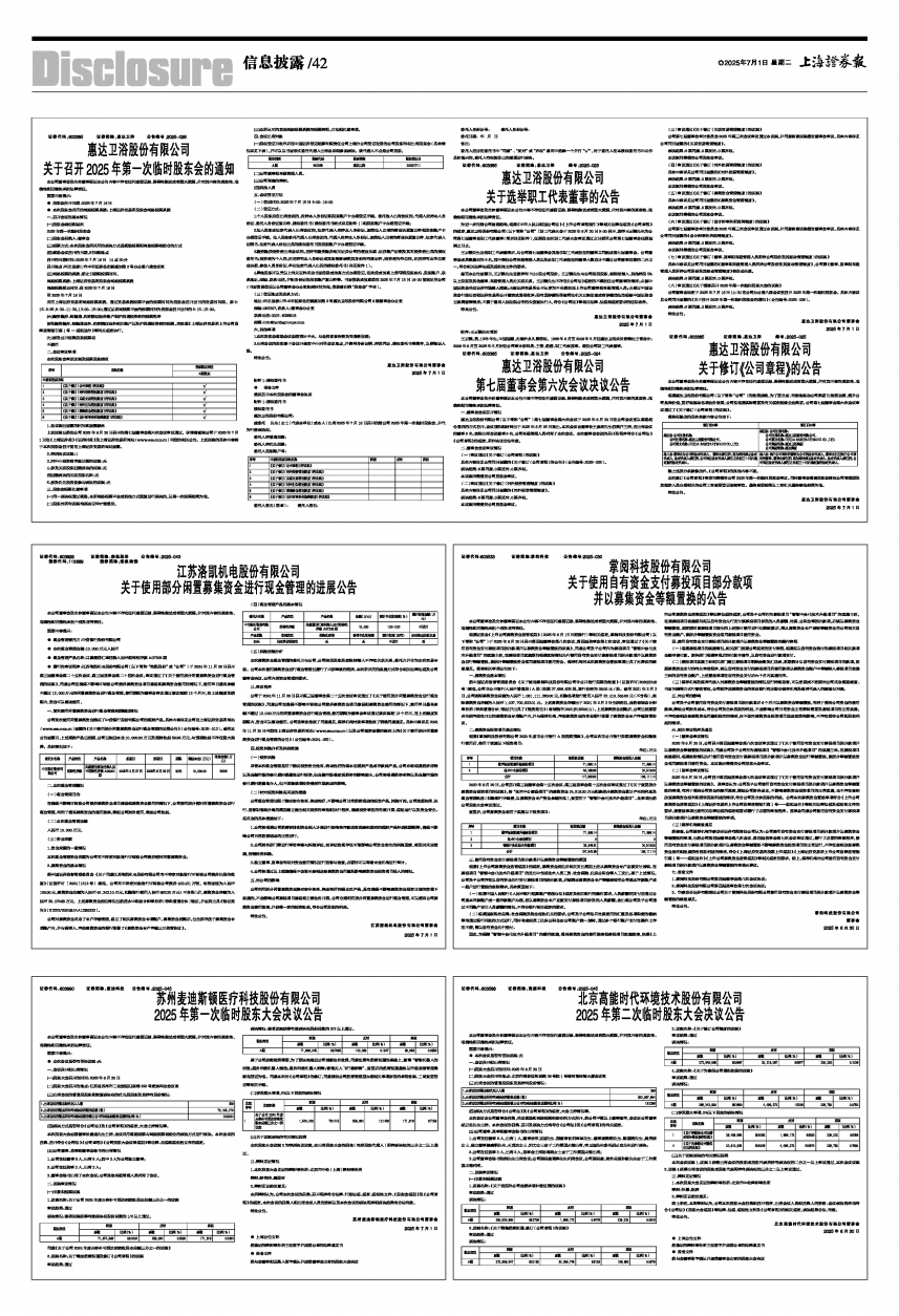 公司董事会决定于2025年7月16日14:30在公司办公楼八楼会议室召开2025年第一次临时股东会。具体内容详见公司同日披露的《关于召开2025年第一次临时股东会的通知》(公告编号:2025-026)。