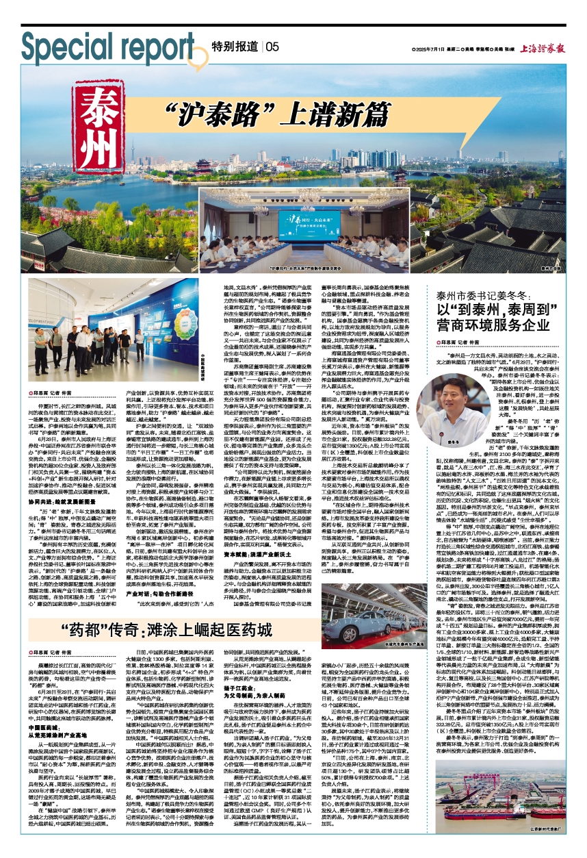 “泰州是一方文昌水秀、灵动朗润的土地,水之灵动、文之韵味塑造了独特的城市气质。”6月29日,“沪泰同行·共启未来”产投融合座谈交流会在泰州举办。泰州市委书记姜冬冬表示:“期待各家上市公司、优强企业以及金融投资机构一如既往地关注泰州、看好泰州,进一步投资泰州、扎根泰州,登上泰州这艘‘发展快轮’,共赴星辰大海。”