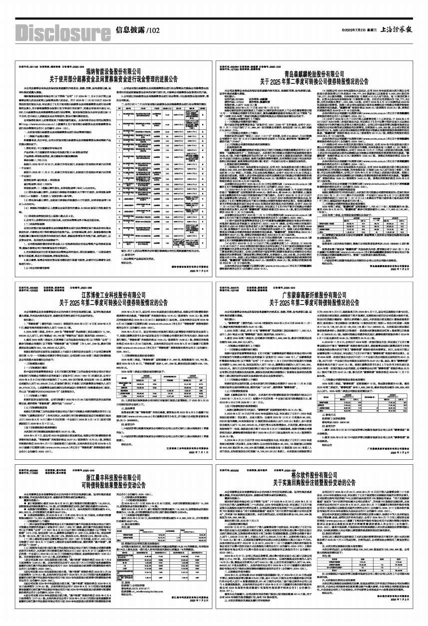 3、截至2025年第二季度末,公司剩余可转债为2,999,398张,剩余可转债票面总金额为299,939,800元人民币。