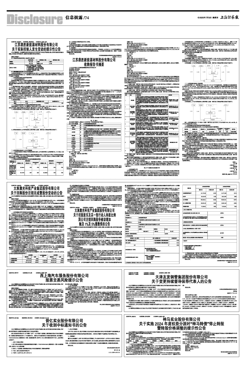 二、依据《中华人民共和国证券法》《上市公司收购管理办法》及《公开发行证券的公司信息披露内容与格式准则第16号一一上市公司收购报告书》的有关规定,本报告书摘要已全面披露了收购人及其一致行动人在鼎胜新材拥有权益的股份。截至本报告书摘要签署之日,除本报告书摘要披露的持股信息外,上述收购人及其一致行动人没有通过任何其他方式在鼎胜新材中拥有权益。