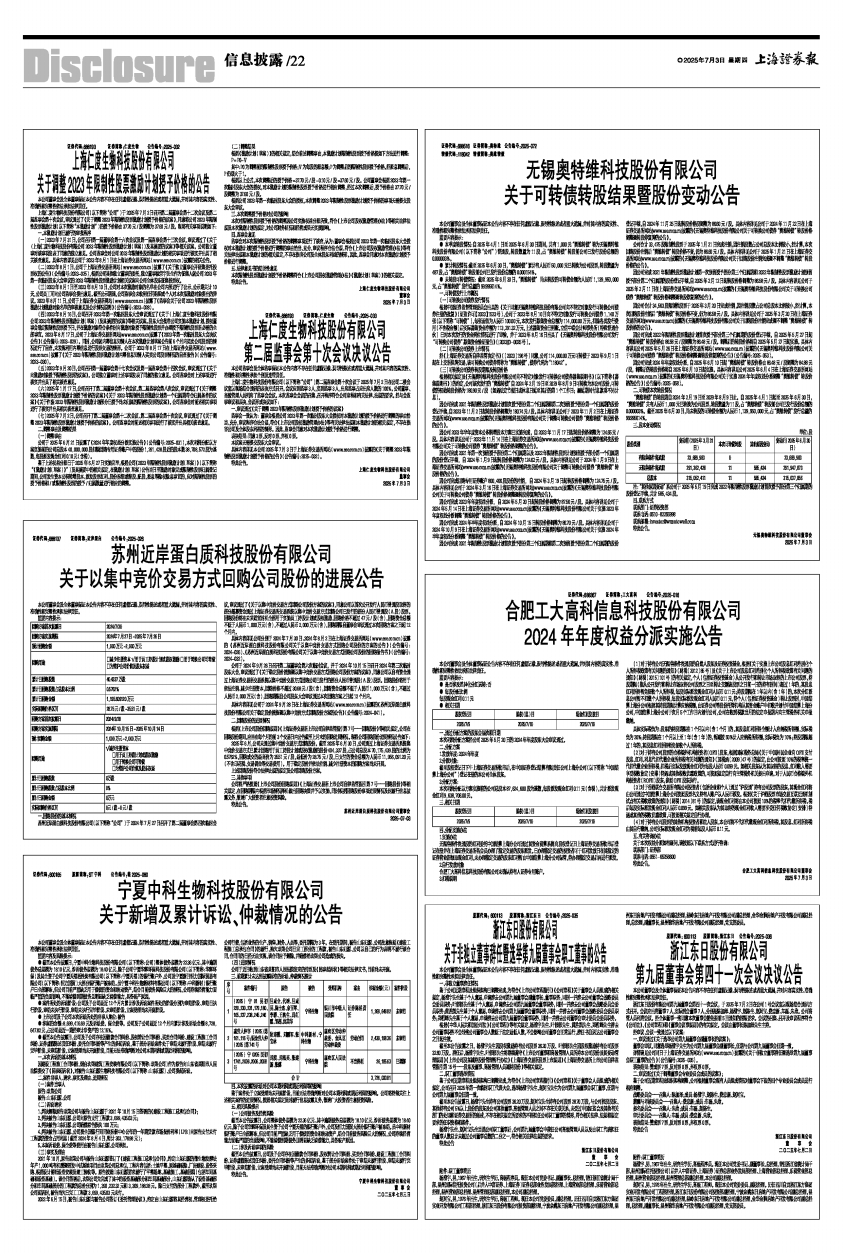 ● 累计转股情况:截至2025年6月30日,“奥维转债”累计有人民币50,000元已转换为公司股票,转股数量为487股,占“奥维转债”转股前公司已发行股份总额的0.000154%。