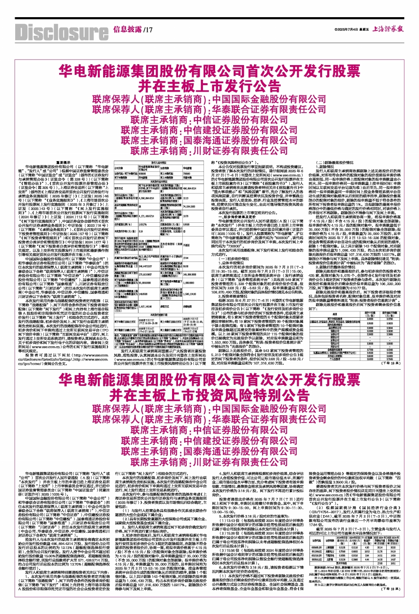 华电新能源集团股份有限公司(以下简称“发行人”或“公司”)首次公开发行人民币普通股(A股)(以下简称“本次发行”)并在主板上市的申请已经上海证券交易所(以下简称“上交所”)上市审核委员会审议通过,并已经中国证券监督管理委员会(以下简称“中国证监会”)同意注册(证监许可〔2025〕1035号)。