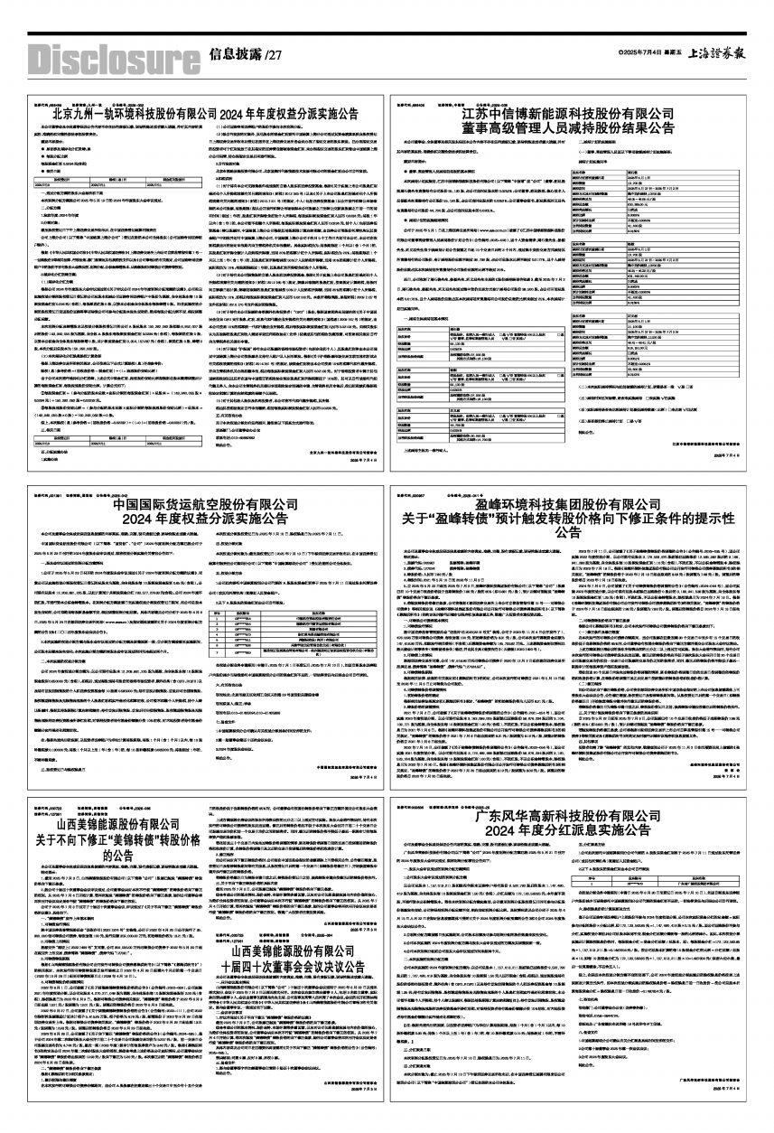 北京九州一轨环境科技股份有限公司2024年年度权益分派实施公告