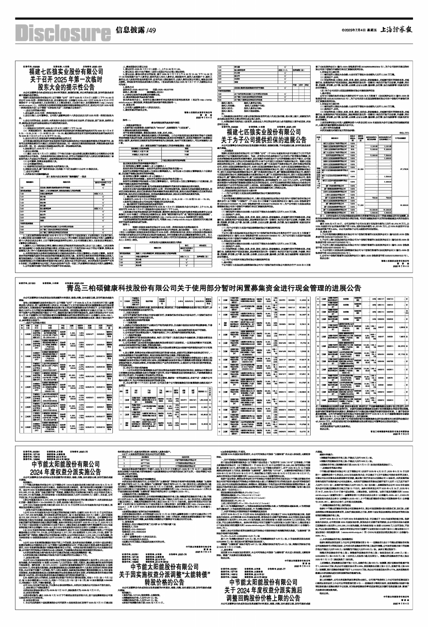 福建七匹狼实业股份有限公司(以下简称“公司”)定于2025年7月8日(星期二)下午14:00召开公司2025年第一次临时股东大会,会议通知公告(公告编号2025-051)已于2025年6月21日刊登发布于《中国证券报》、《证券时报》、《上海证券报》、《证券日报》及巨潮咨询网(http://www.cninfo.com.cn)上。本次股东大会将采用现场投票和网络投票相结合的方式,现对公司召开2025年第一次临时股东大会(以下简称“本次股东大会”)再次提示公告如下: