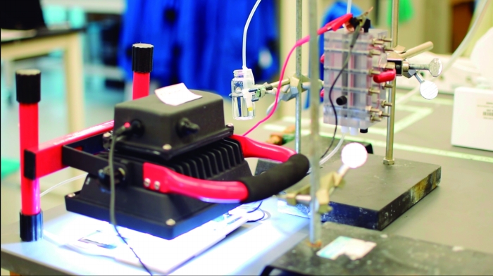 过氧化氢溶液又称“双氧水”,当其达到一定浓度时,即可产生杀菌作用。随着浓度和纯度的提升,过氧化氢溶液也可以用在食品加工灭菌、芯片制造的超净清洗、核反应堆等广泛领域。但由于其性质不稳定、作用短暂,因此在生产和存储环节存在诸多挑战。通过“水基电化学制过氧化氢”技术,用户加水通电即可生成浓度可控的过氧化氢溶液。