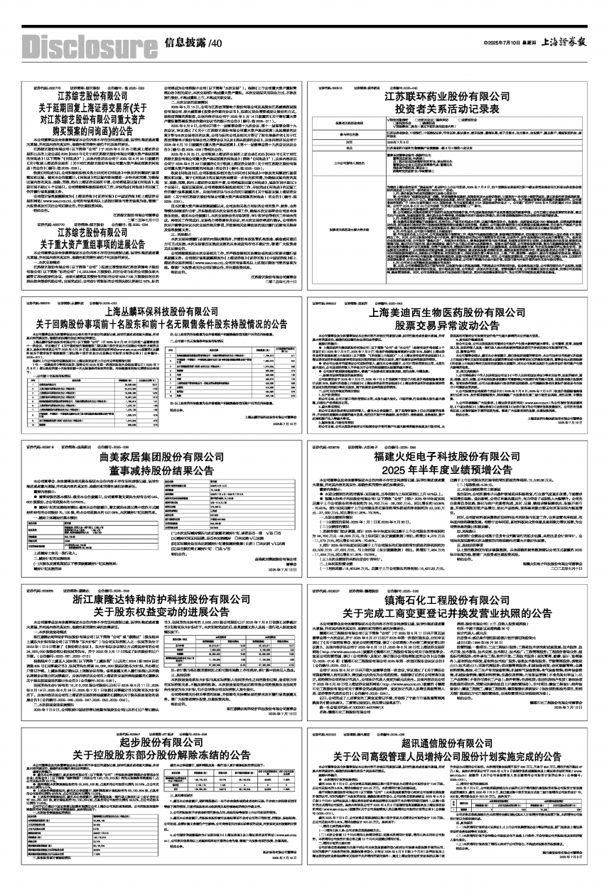 截至2025年7月9日,公司财务总监郭彦岐以集中竞价交易方式增持公司股份合计7.93万股,占公司总股本的0.05%,增持金额合计301.02万元。具体如下: