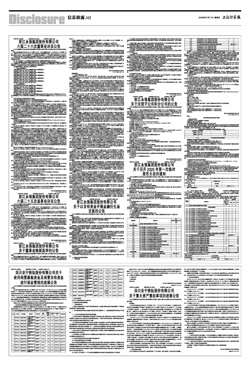 浙江永强集团股份有限公司(以下简称“公司”)第六届董事会第二十六次会议(以下简称“会议”)通知于2025年6月30日以专人送达、传真或电子邮件等形式发出,会议于2025年7月10日以通讯表决方式召开。应参与表决董事8人,实际参与表决董事8人。公司监事、高管等列席了本次会议。