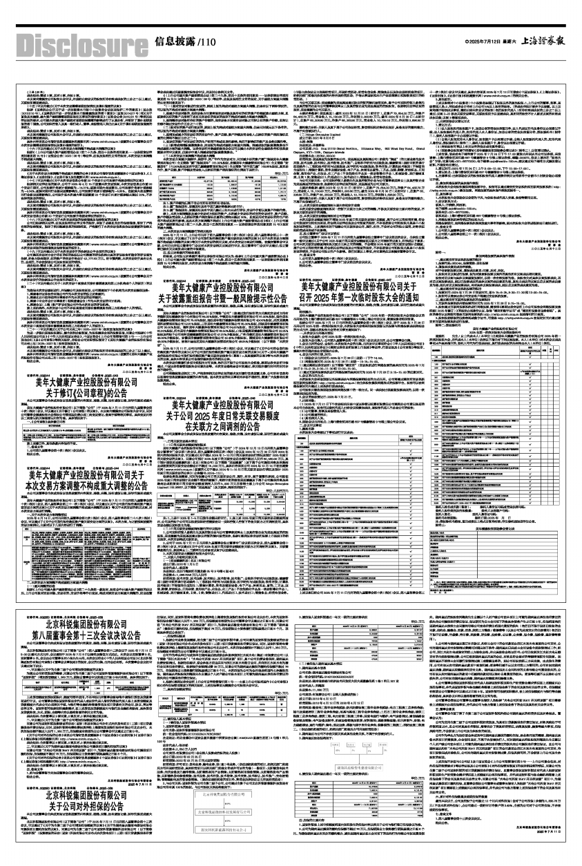 美年大健康产业控股股份有限公司(以下简称“公司”)于2025年7月11日召开第九届董事会第十次(临时)会议、第八届监事会第三十一次(临时)会议,审议通过《关于公司发行股份购买资产暨关联交易方案的议案》《关于本次交易方案调整不构成重大调整的议案》等关于本次交易的相关议案,对本次交易方案进行调整。