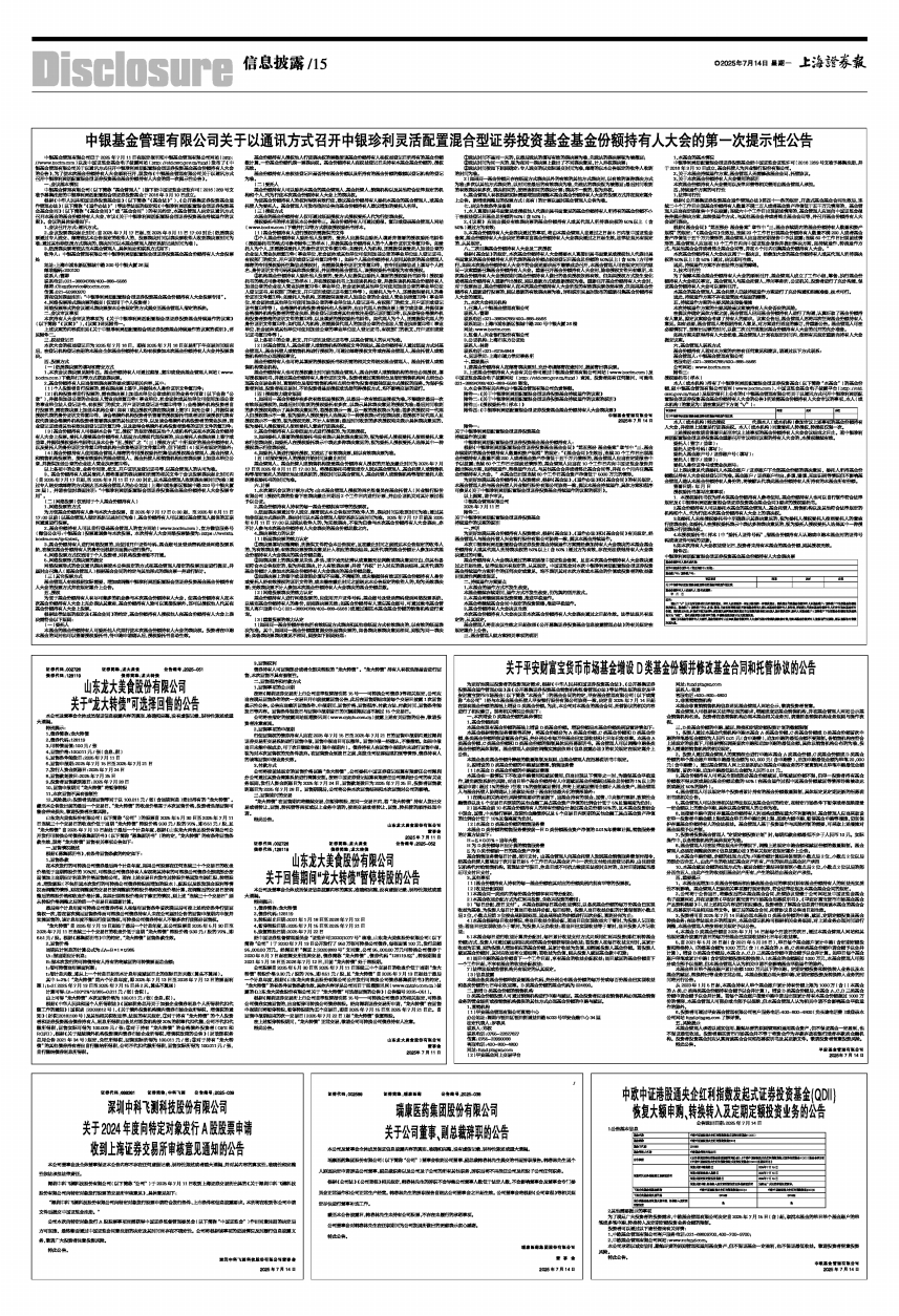 4、本基金D类基金份额自2025年7月14 日起每个开放日的次日,通过本基金管理人网站和其他规定媒介披露开放日的每万份基金已实现收益和七日年化收益率。