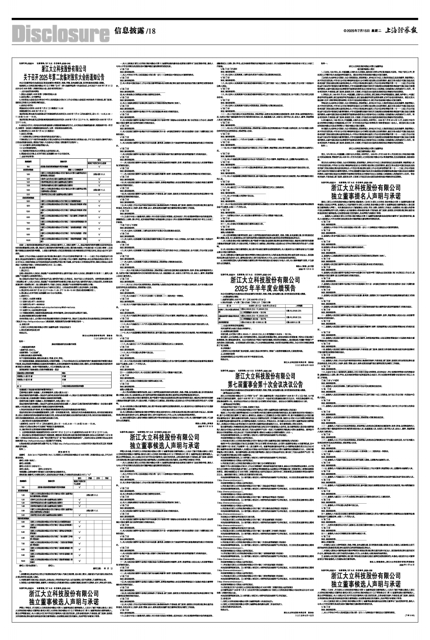 根据浙江大立科技股份有限公司(以下简称“公司”)第七届董事会第十次会议决议,公司决定于2025年7月31日召开公司2025年第二次临时股东大会,会议有关事宜如下: