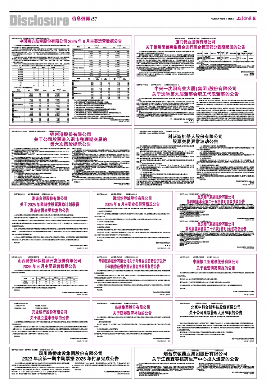 2025年6月主要运营数据公告