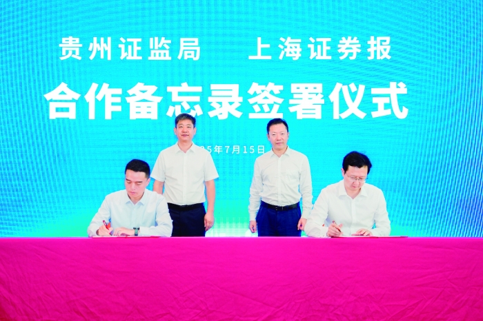 7月15日,黄浦江畔,中国证券监督管理委员会贵州监管局与上海证券报社签署合作备忘录。双方明确将在监管共治、资源共享、平台共建等方面深化合作——包括设立“上海证券报贵州资本市场服务中心”、联合推出“贵州资本市场高质量发展”系列专题与“贵州资本市场价值发现计划”、共建舆情监测机制及投资者教育平台等,标志着双方合作迈入新阶段。