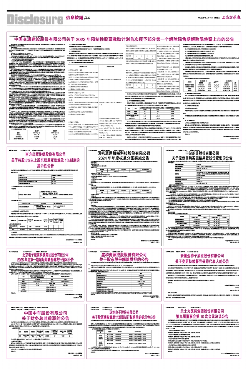 中国交通建设股份有限公司关于2022年限制性股票激励计划首次授予部分第一个解除限售期解除限售暨上市的公告