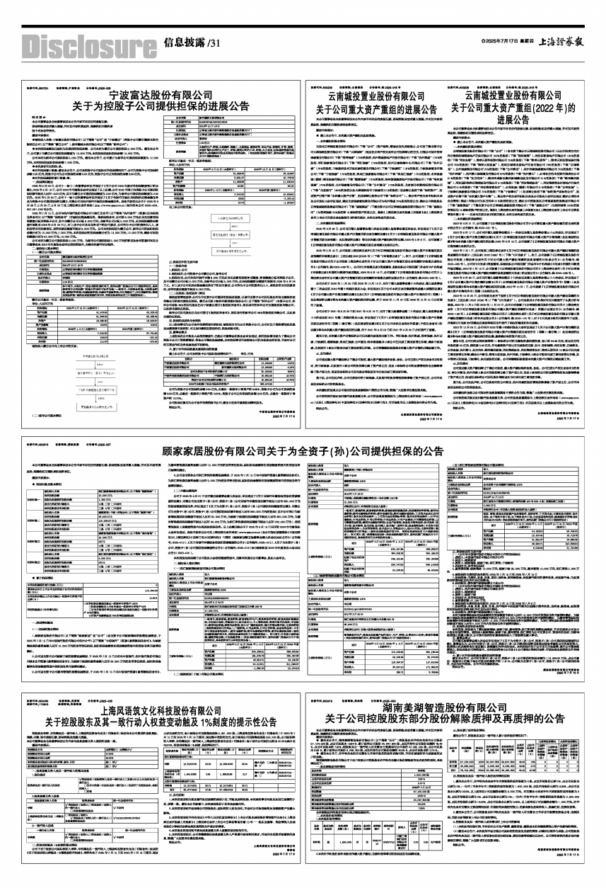 2025年7月15日,公司与杭州银行股份有限公司宁波江北支行(以下简称“杭州银行”)签署《反向保理业务合同》(以下简称“保理合同”)开展供应链金融业务。根据保理合同,公司将8,000万元反向无追索权保理额度分配至控股子公司,其中向蒙自公司分配3,000万元,向新平公司分配5,000万元,反向保理融资总额度有效期至2026年6月24日止,对上述子公司在本业务项下的应付款项,公司作为子公司的债务加入人,承担连带共同还款责任,连带还款总额度不超过8,000万元。公司本次担保前为蒙自公司、新平公司的实际担保余额分别为10,000万元、7,000万元,本次担保后的担保金额分别为13,000万元、12,000万元,剩余可用担保额度分别为22,000万元、13,000万元。