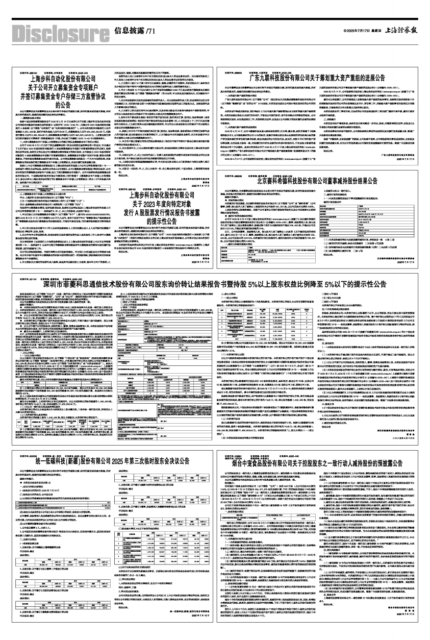 具体情况详见公司在2025年7月16日披露于巨潮资讯网(www.cninfo.com.cn)的《中信证券股份有限公司关于深圳市菲菱科思通信技术股份有限公司股东向特定机构投资者询价转让股份的核查报告》。