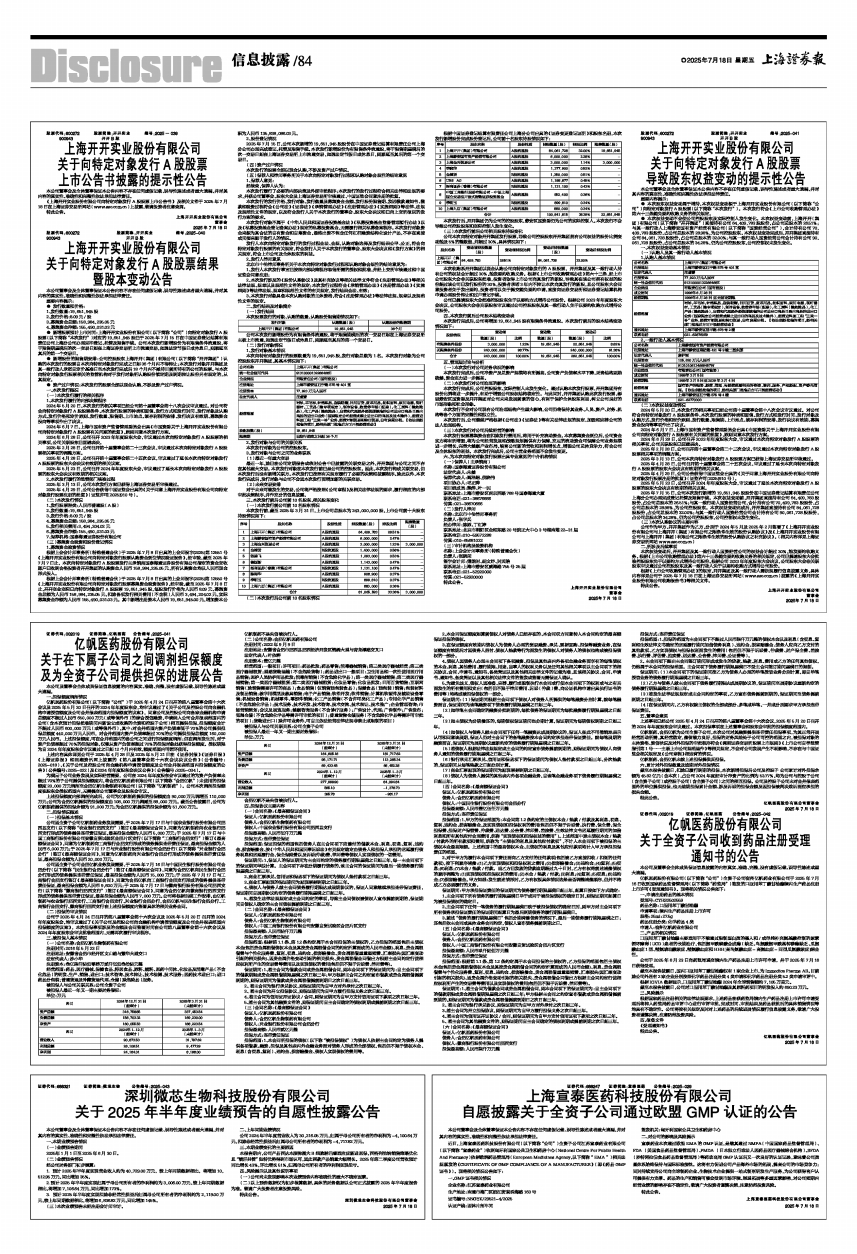 《上海开开实业股份有限公司向特定对象发行A股股票上市公告书》及相关文件于2025年7月18日在上海证券交易所网站(www.sse.com.cn)上披露,敬请投资者注意查阅。