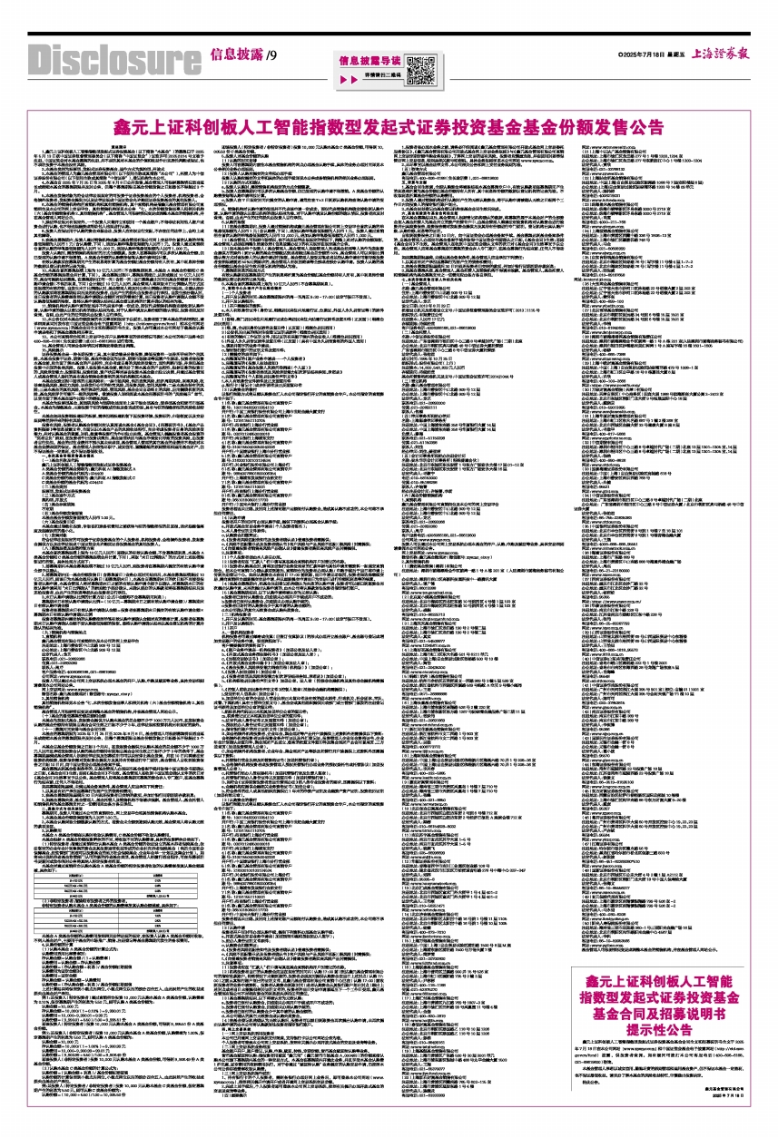 鑫元上证科创板人工智能指数型发起式证券投资基金基金合同全文和招募说明书全文于2025年7月18日在本公司网站[www.xyamc.com]和中国证监会基金电子披露网站(http://eid.csrc.gov.cn/fund)披露,供投资者查阅。如有疑问可拨打本公司客服电话(400-606-6188、021-68619600)咨询。