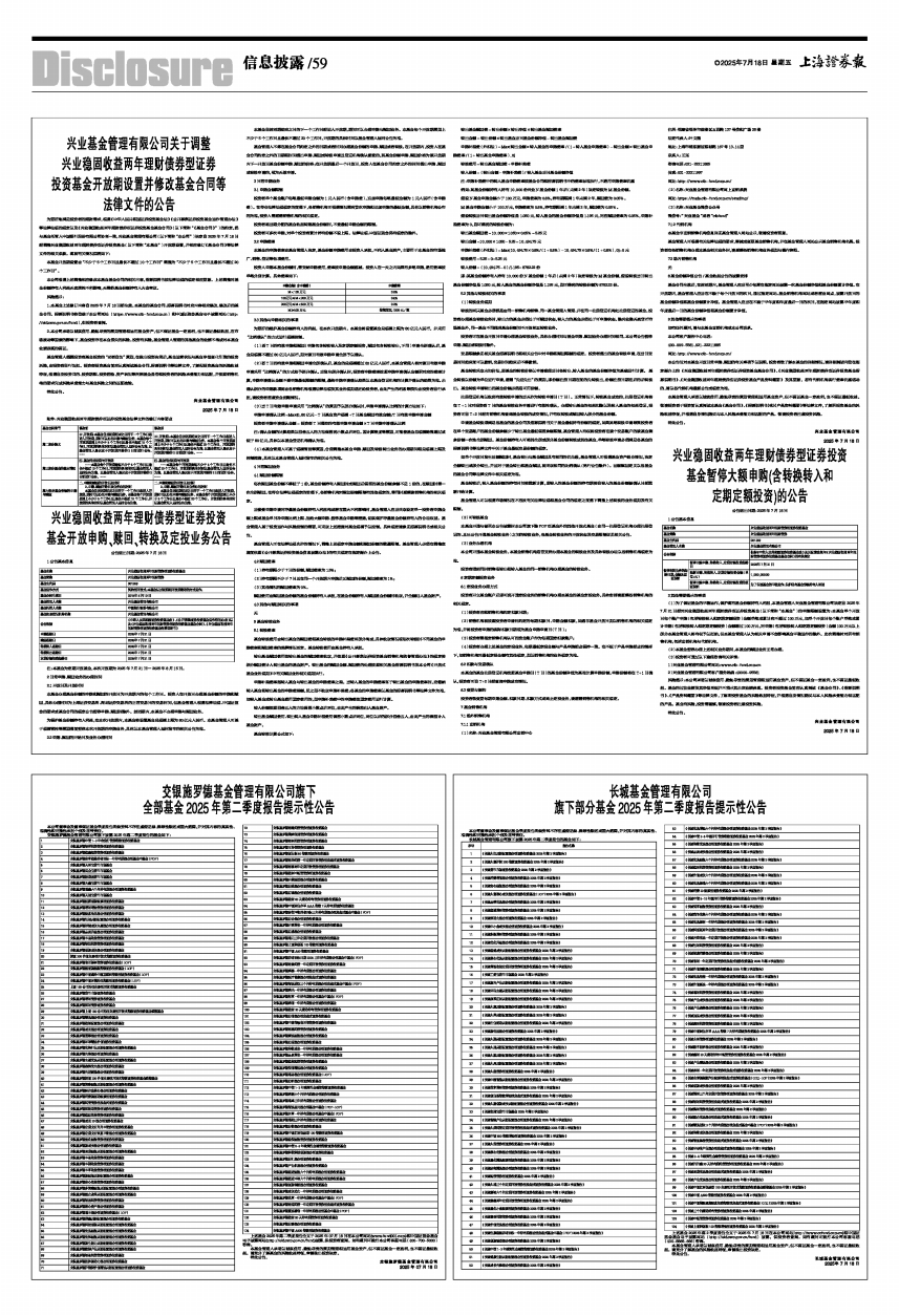 上述基金2025年第二季度报告全文于2025年07月18日在本公司网站(www.fund001.com)和中国证监会基金电子披露网站(http://eid.csrc.gov.cn/fund)披露,供投资者查阅。如有疑问可拨打本公司客服电话(400-700-5000)咨询。